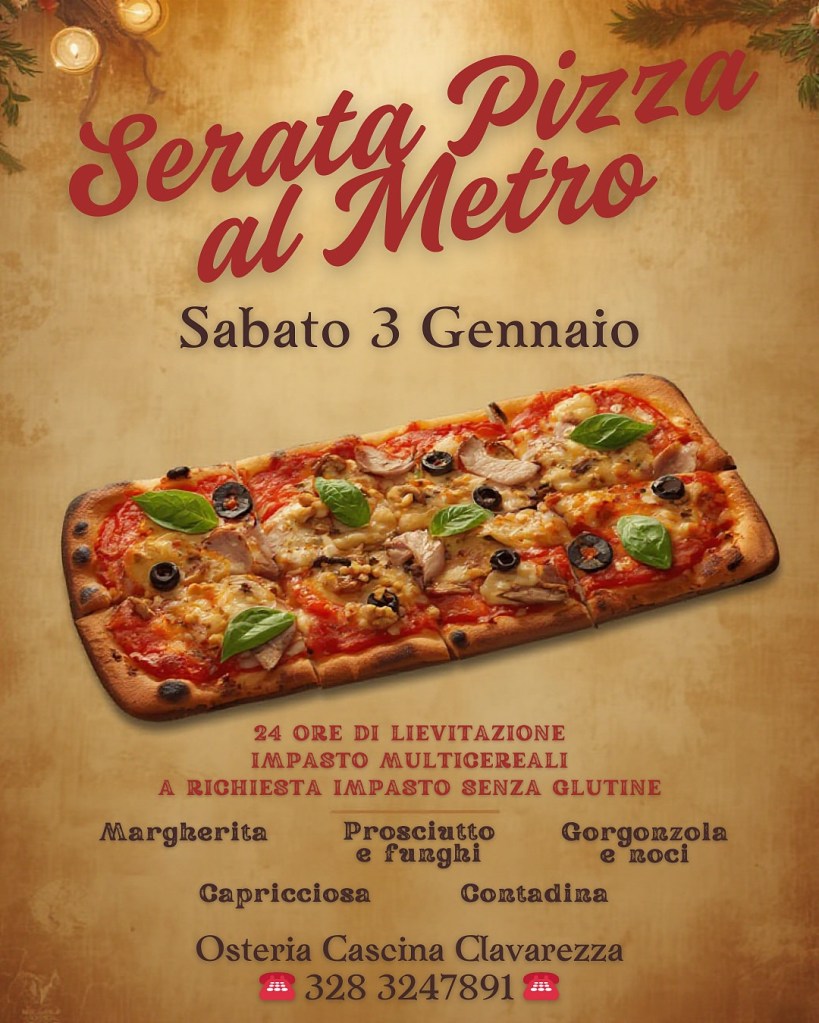 Ci vediamo Sabato 3 Gennaio per l’ultima serata Pizza al metro prima della lunga chiusura invernale, vi aspettiamo! 🥰